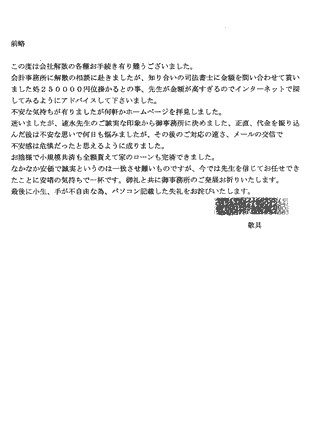 当事務所では、今後のサービス向上・改善のため、ご利用いただいたお客様にアンケートを実施しております。お寄せいただいたご意見を真摯に受け止め、より一層ご満足していただけるよう、日々努力していきたいと考えております。